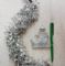| regalo babbo Natale sulla slitta da appendere in plastica dura,satinata con parti argentate e un pezzo di festone argento ... | ||