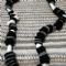 | Più di 130 discetti di lana infeltrita ritagliati a mano, perle in acrilico e metallo Cm 98 circa Capo unico | ||