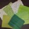 | Sette ritagli quadrati di scampoli in tessuto 100% cotone per lavori creativi sui toni del verde. Misure 49.5 x 49,5 | ||