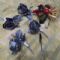 | Decorazioni floreali nuove blu e nastro rosso, nuovi | ||