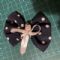 | In stoffa blu a pois bianchi. Largo circa 10 cm. Con nastrino e rosellina in raso bianco. | ||