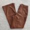 | Pantalone marrone a vita alta in finta pelle morbida e felpata all’interno; modello aderente a gamba ampia con venature ce... | ||