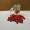 | Candela rossa in barattolo con 50 palline di cera | ||